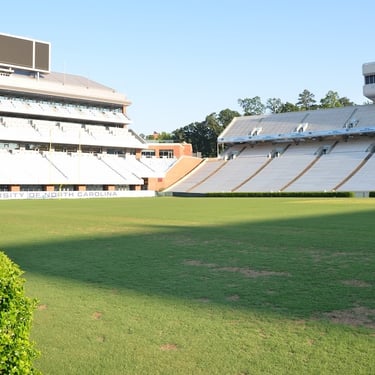 Students painted Carolina blue from toe to head, like someone dipped them and forgot to pull them out. Camera crews slide around the baseline like predators. The band is punching brass into the thick air. My Dad keeps looking around, like someoneâs going to tap him on the shoulder and say âsir, come onâŠwe know.â